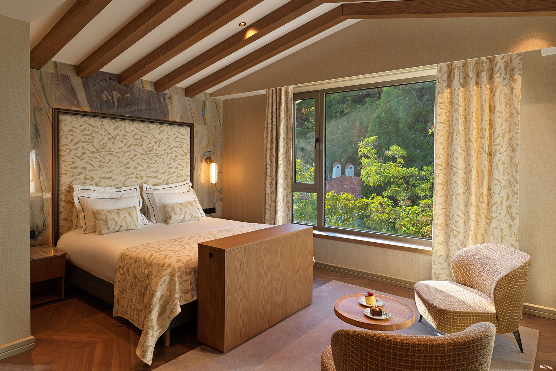Experience elevated mountain hospitality in one of our 35 Superior Rooms (25-31 sqm) that enjoy scenic view. Each space blends the serene charm of the Troodos landscape with contemporary design and bespoke luxury. Natural textures and clean lines reflect the surrounding forested hills, while curated furnishings ensure refined comfort for every type of traveller. Located on the 2nd, 3rd, and 4th floors, these rooms offer a harmonious blend of comfort and style, with soothing views of nature or Platres village. Featuring a private balcony, they’re ideal for couples or families of up to three persons, seeking a relaxing mountain retreat.
