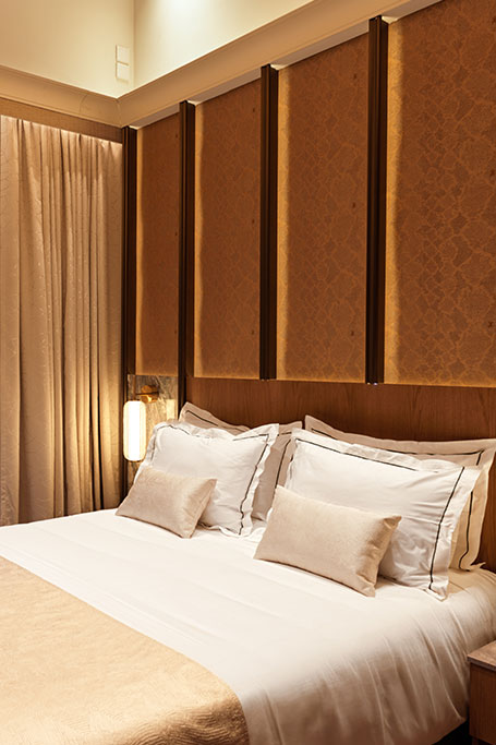 Discover our spacious two-bedroom suites. Featuring two sumptuously decorated bedrooms with their elegant bathrooms, the Premier Suites on the fourth floor are the height of refinement. Their vast terrace and grand windows offer breathtaking views over the pine covered hills of Troodos. Luxury and elegance merge into an unforgettable experience. Natural materials, stone, wood, and marble, define the aesthetic, while interiors are graced with bespoke elements from prestigious design houses. The Premier Suites can accommodate small groups or families of up to six persons.