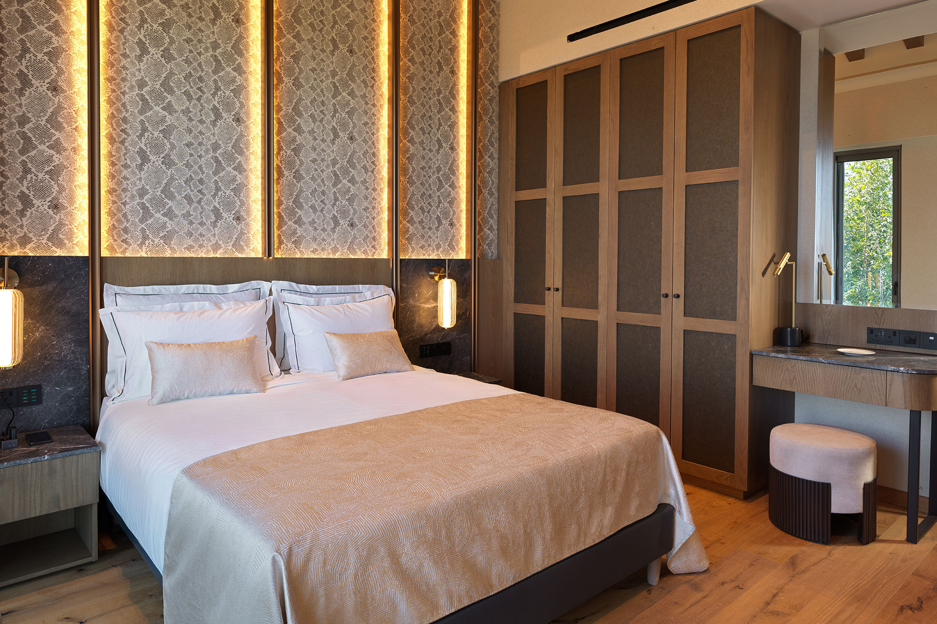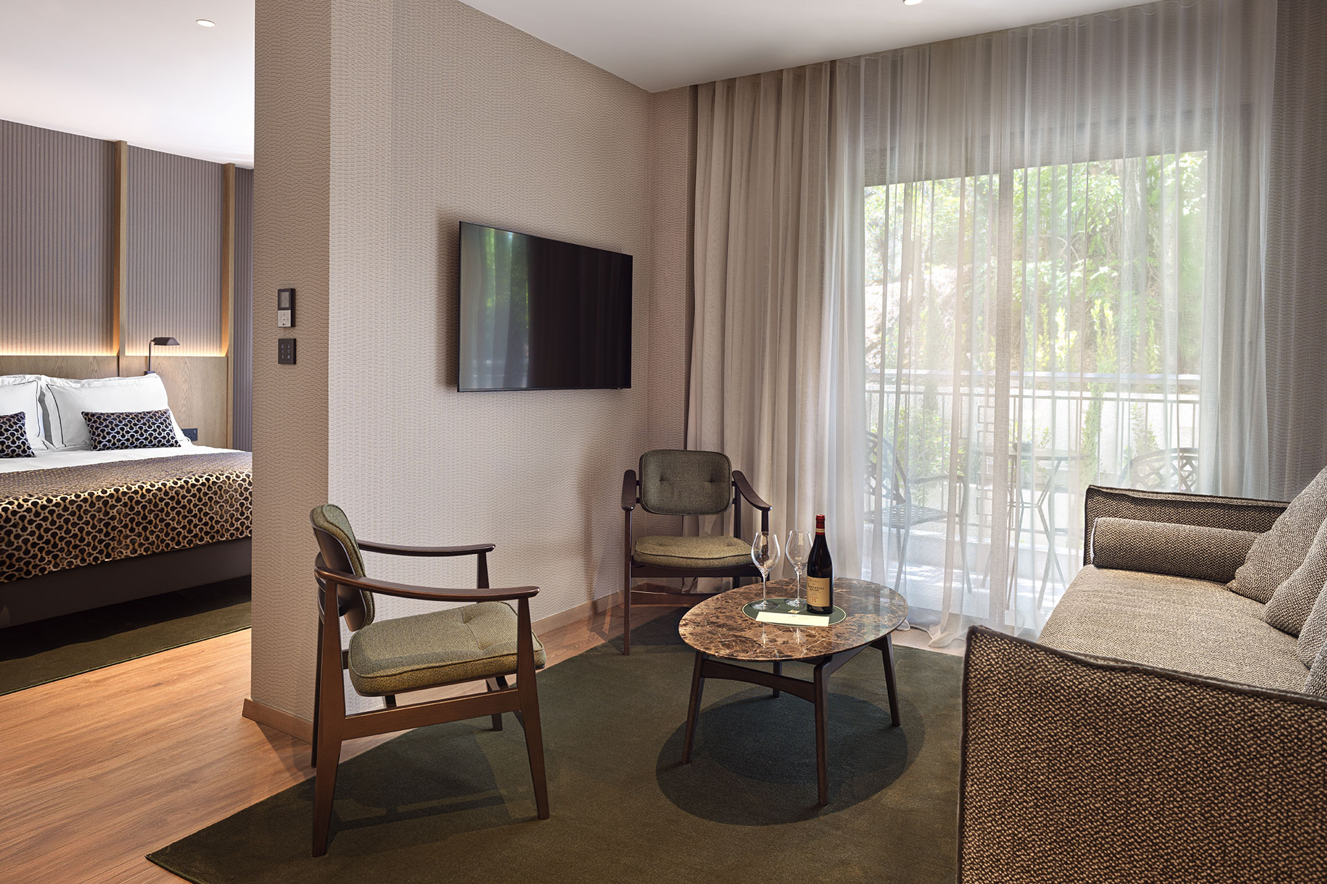 The superbly appointed Junior Scenic View Suites provide a sumptuous and serene space for our guests. These spacious suites (32-44 sqm) are elegantly furnished and feature one-bedroom, separate living area and a private veranda overlooking the lush greenery of the surrounding landscape. Ideal for families of up to five persons or small groups, the Junior Suites are designed for those seeking extra space and comfort with a spectacular view from the fifth floor.